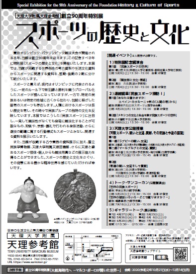 受付カウンターに障がい者手帳をご提示ください。特別展については、日本スポーツ人類学会の協力を得ていることもあり、会員の先生方には通常の入場料500円のところ、無料にて入場していただくこができます。その場合、入場の際に招待券が必要となります。ご希望の方は、天理大学体育学部・田里千代(ctasato@sta.tenri-u.ac.jp)までお知らせください。特別展は通常通り開催されておりますが、5月2日までの各種イベントについては中止となっています。ご注意ください。